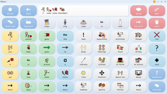 Grid 3 allows the user to use a computer as a speech generating communication aid by using symbols or text to build sentences. Additionally, the user can receive email, SMS, browse the web, listen to music.. and more!