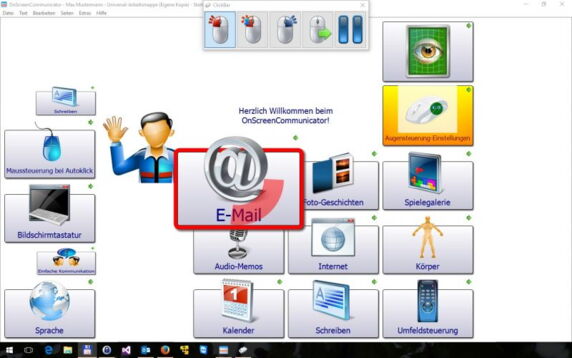 OnScreenCommunicator contains a comfortable text communication include word, sentence and phrase prediction in over 40 languages. Additionally eMail, internet, Skype, a calendar and much more are available within the software.